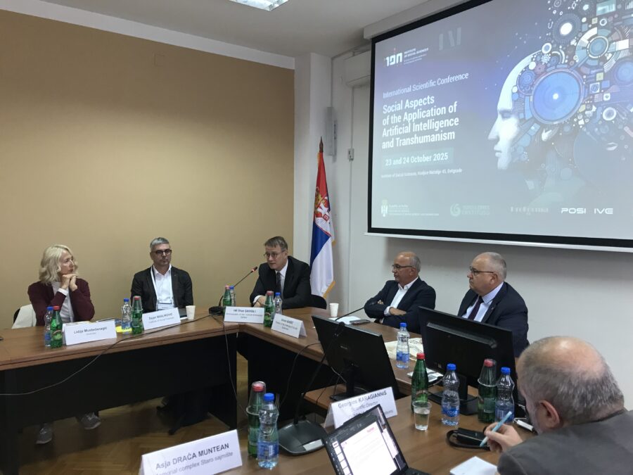 Приликом свечаног отварања конференције, организоване под називом „Социјални аспекти примене вештачке интелигенције и трансхуманизма“, др Горан Башић, директор Института друштвених наука, и др Владимир Удовичић, директор Истраживачко-развојног института за вештачку интелигенцију, заједно са представницима државних институција и међународних организација, истакли су значај повезивања друштвених и техничких наука у разумевању феномена вештачке интелигенције. Посебно је наглашена одговорност научне заједнице у обликовању етичких стандарда и јавних политика које прате развој нових технологија.