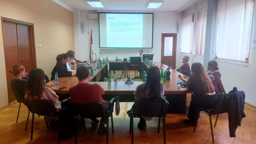 У оквиру циклуса представљања новопридошлих колегиница и колега у Институту друштвених наука, Александар Вукадиновић, истраживач-приправник Центра за правна истраживања, одржао је предавање на тему „’Смрт законодавца’ као изазов тумачењу права“.